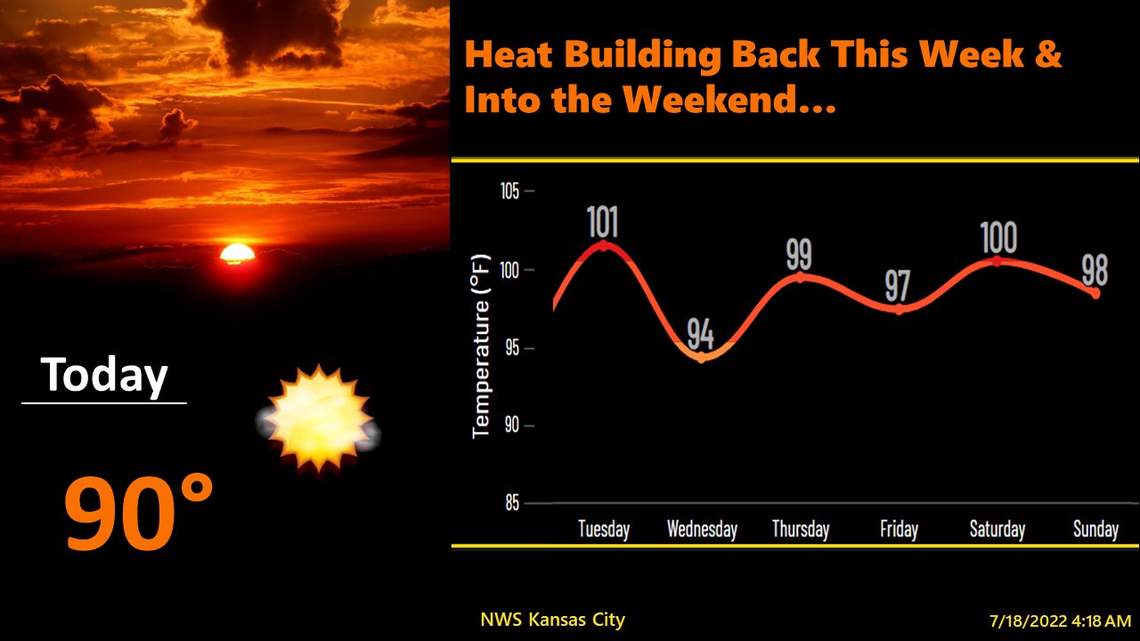 Nws Kansas City On Twitter A Very Warm Week Ahead With Several Chances To See Triple Digit Highs For Portions Of Eastern Ks And Nw Mo Heat Safety Tips Drink Plenty